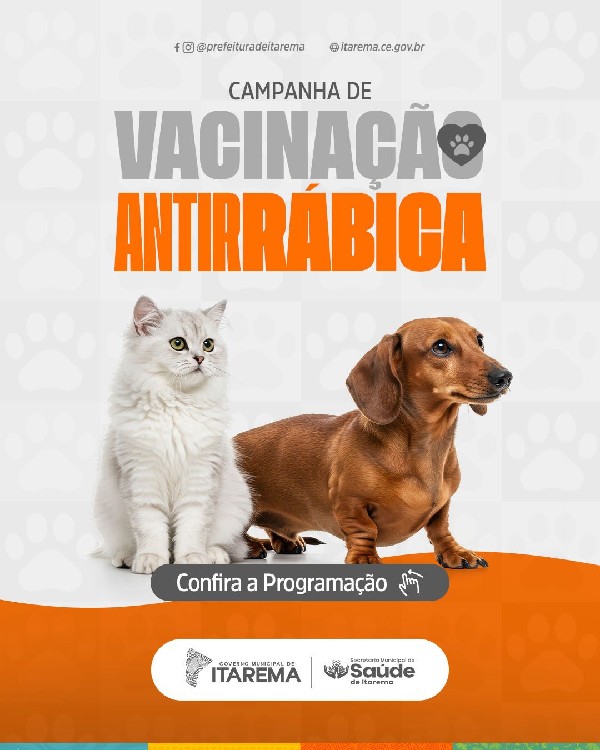 A Secretaria de Saúde convida todos os tutores a protegerem seus animais de estimação! A campanha de vacinação antirrábica está chegando e é fundamental para garantir a saúde e segurança dos cães, gatos e também de toda a comunidade.